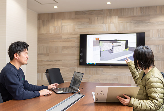 アルスグリーンの新築外構は、お客さまの夢のお庭を実現するために、プランナーがお打合せにて詳しくご希望を伺い、確かな技術をもった職人が施工します。