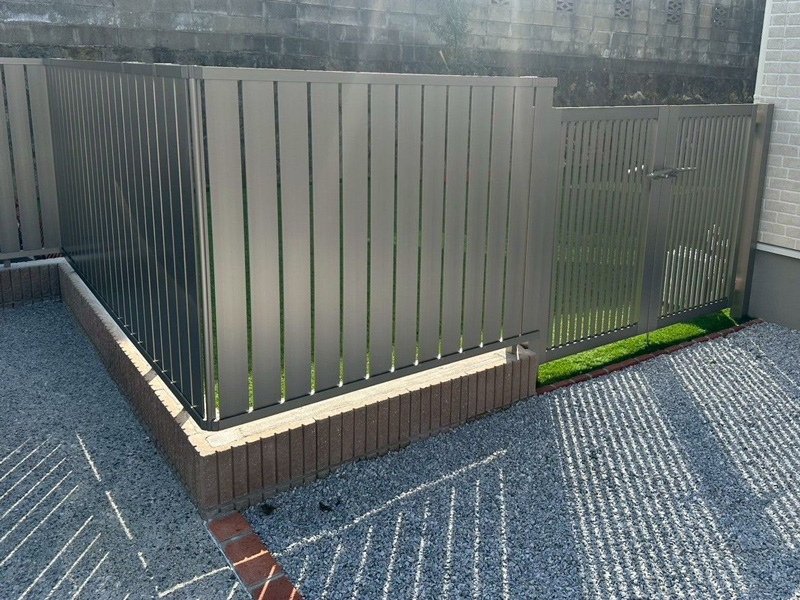 お庭にはシンプルなシルバーの目隠しフェンスと門扉を設置。