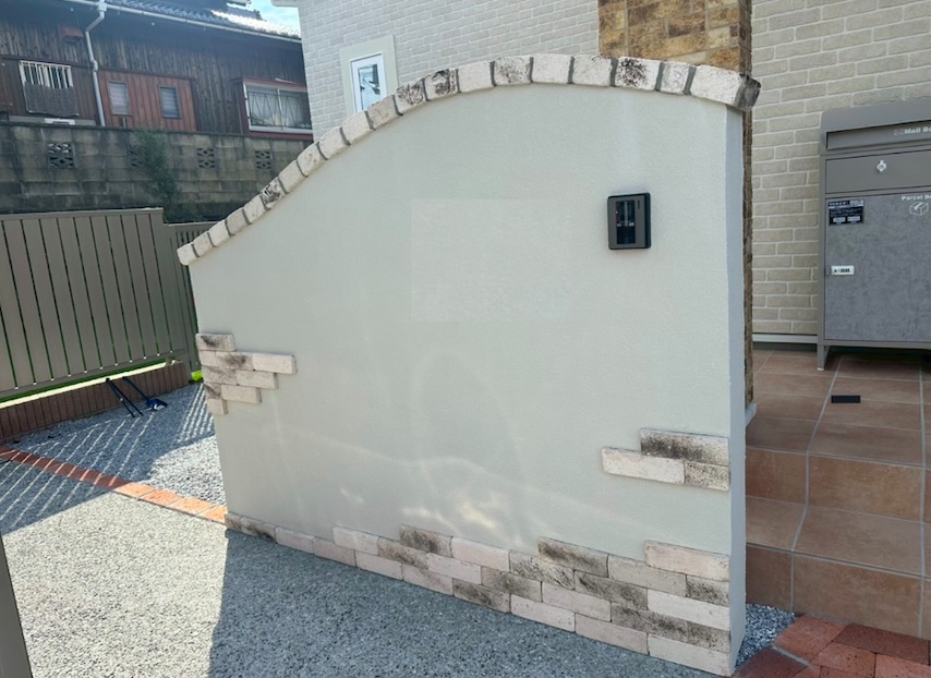 洋風の住宅に合わせ、門壁のレンガと塗装剤には白に近いブラン色を使用。