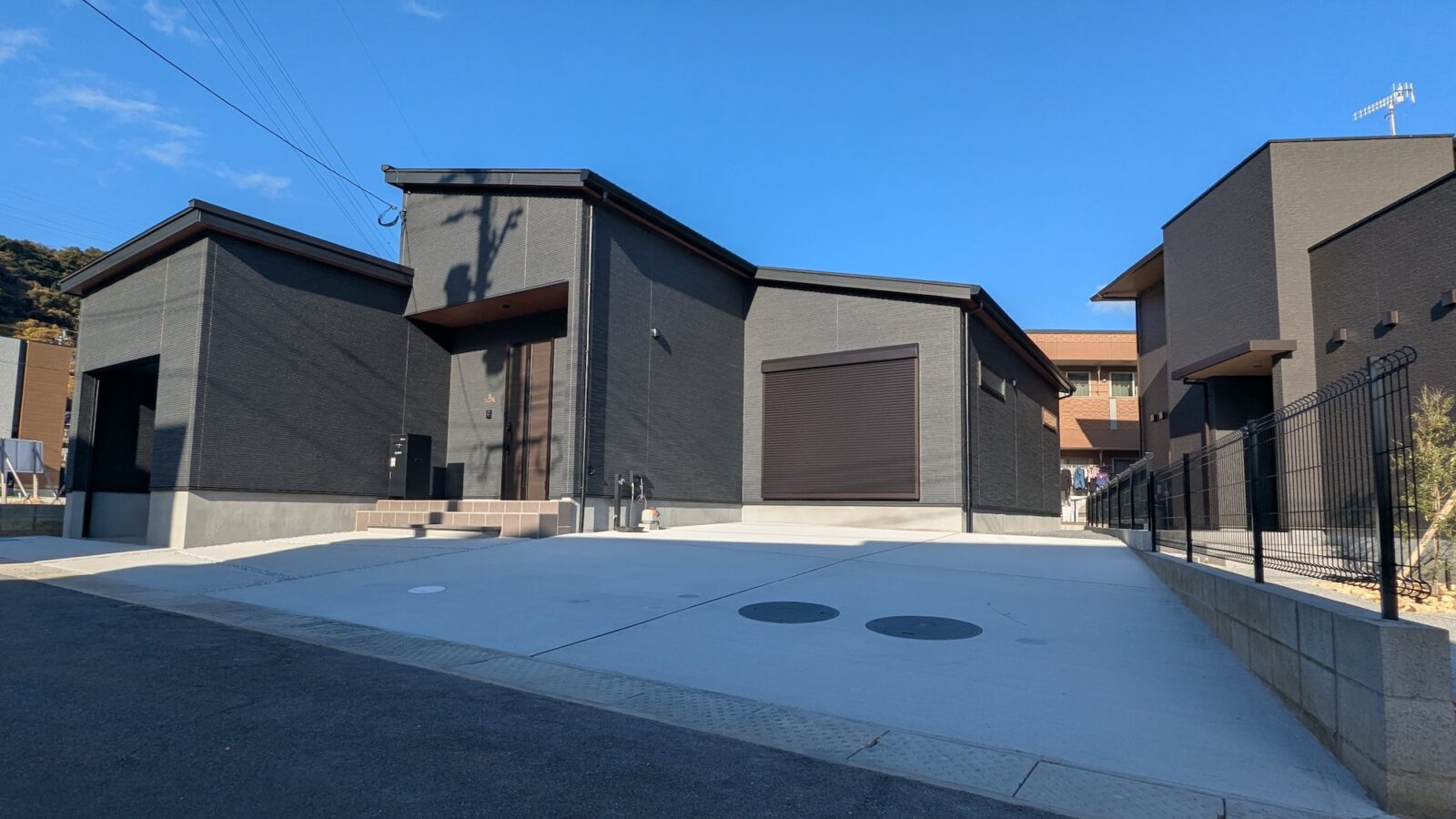 【施工事例・京都郡】駐車スペースも玄関まわりも快適に。機能美が光る新築外構