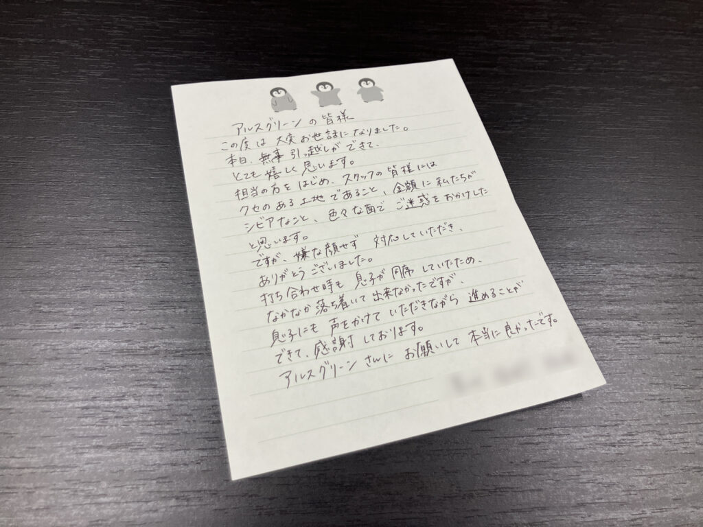 弊社にてエクステリア工事を施工させていただきましたお客様から、感謝のお手紙をいただきました!