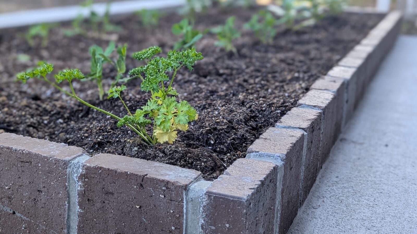 他にも住宅やお庭の雰囲気とマッチするカーポート(三協アルミ「セルフィ」)や機能門柱を設置して、お庭の利便性を高めております。奥には、レンガで作った花壇スペースも。季節の変化が楽しみですね!
