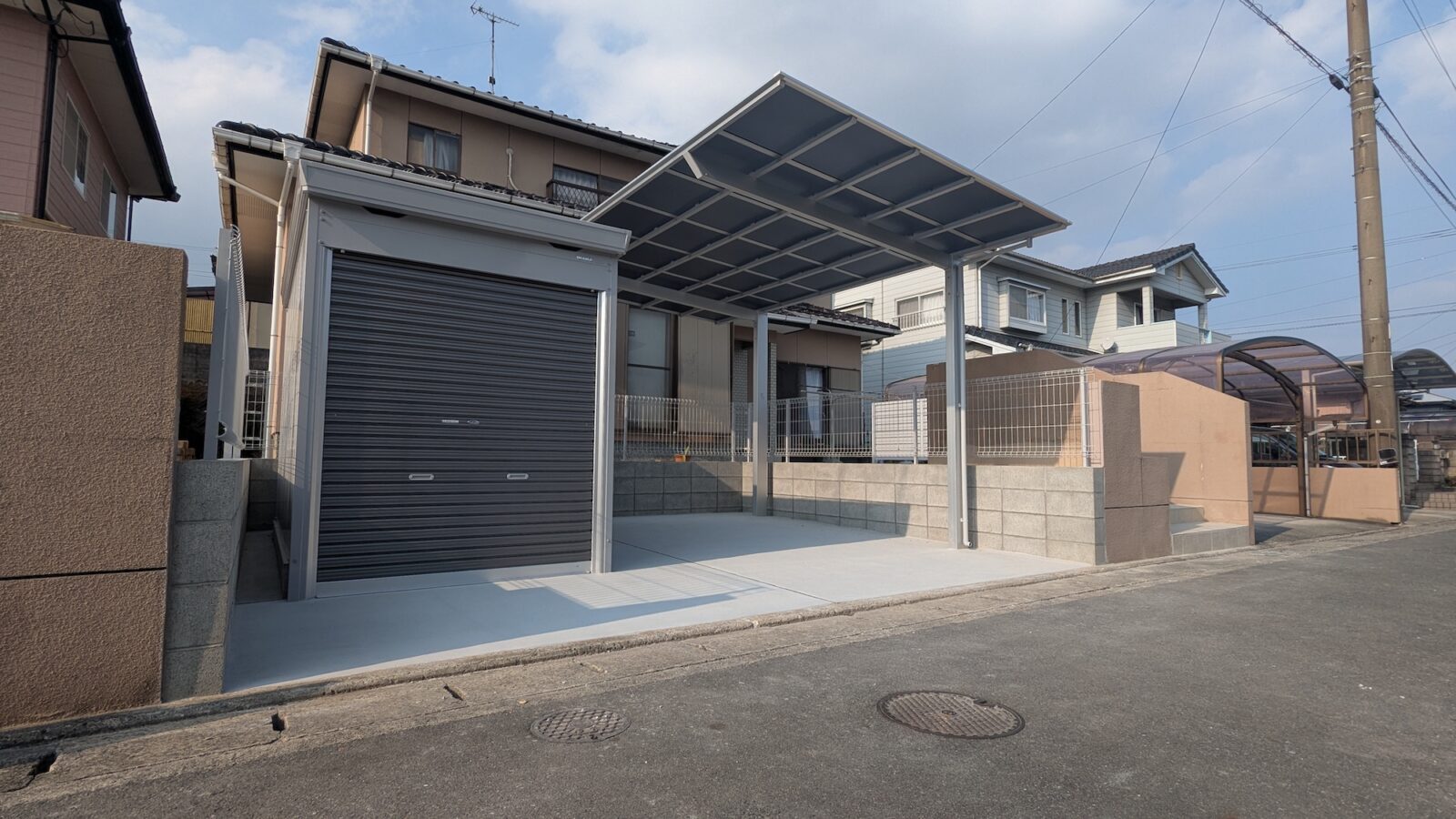 こちらがリフォーム後の写真。開放的で利便性の高い、外構へと生まれ変わりました。