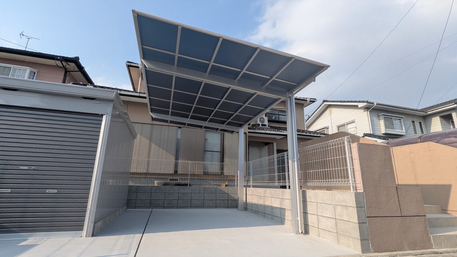 カーポートやバイクガレージなど複数の工事内容がありましたが、すべてアルスグリーンで一括して対応したことで、約14日と短い工期で完了。