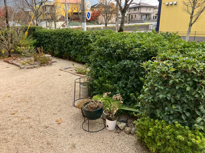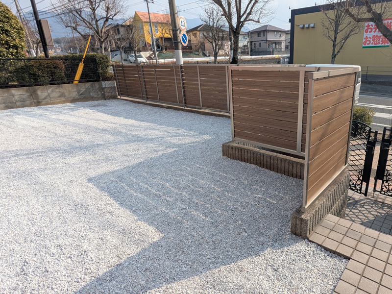 また、植栽を撤去したことで外からの視線が気になる点については、新たに目隠しフェンスを設置。