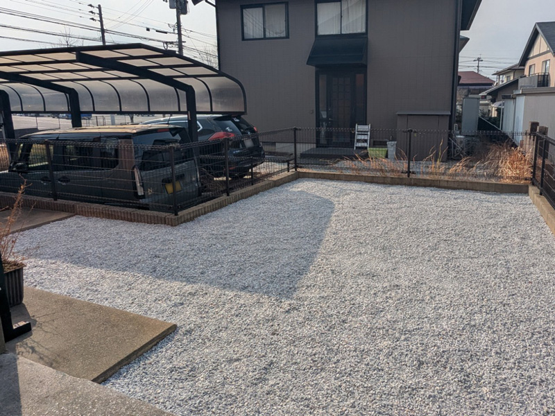 下地には防草シートを施工することで雑草の発生を抑え、日々のお手入れが楽になっています。