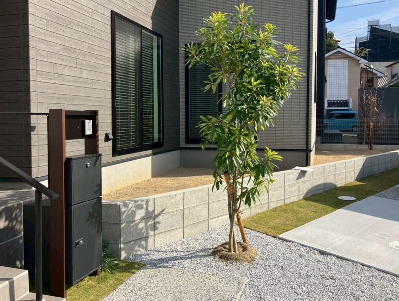 - 【施工事例・福岡県行橋市】建物に寄り添い、季節を楽しむ。山採りアオダモが映える新築外構