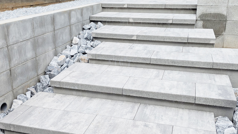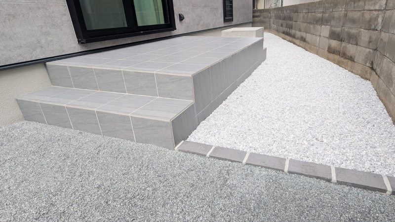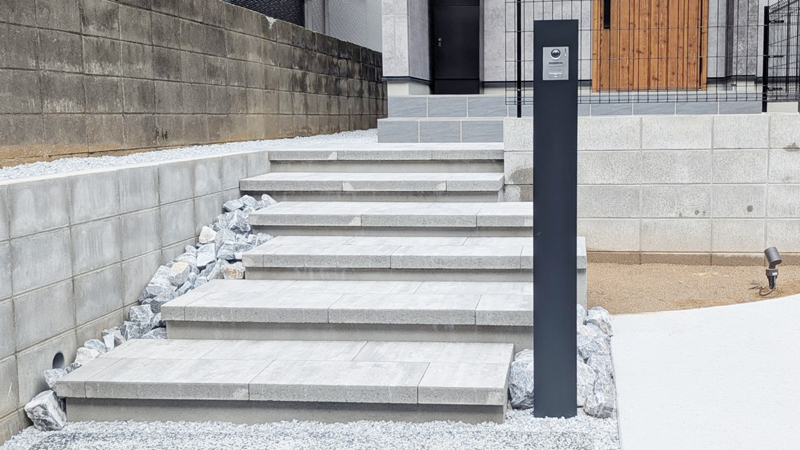 さらに1段ごとに左右へ少しずらすレイアウトを取り入れることで、歩くたびにリズム感が生まれ、見た目にも飽きのこないアプローチになりました。