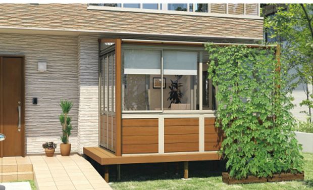 屋根パネル:熱線吸収防汚ポリカーボネート ※オプション。デッキ等は価格には含まれません。