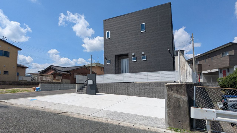 今回ご紹介する施工事例は、小倉南区 M様邸の新築外構工事です! お家の正面にある駐車場には、趣のある刷毛引き仕上げのコンクリートを打設しました。 また、人目につ
