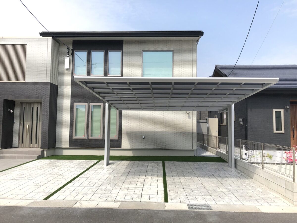 <INFORMATION> S様邸 北九州市小倉南区 新築外構(カーポート、宅配ボックス、門柱、家庭菜園スペース) ●来客があっても安心!広々とした駐車スペース